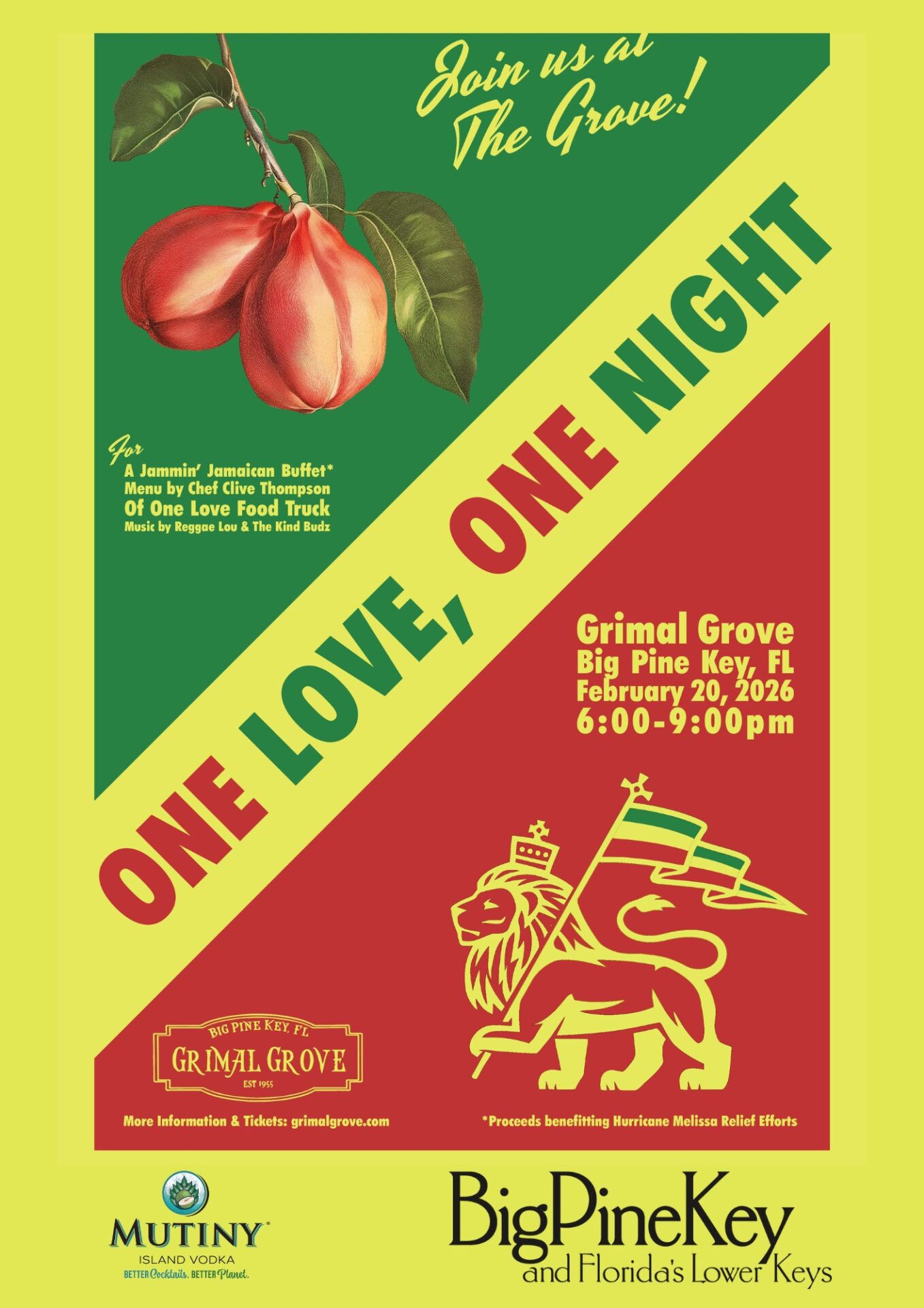 Home / « All Events GRIMAL GROVE-ONE LOVE, ONE NIGHT February 20 @ 6:00 pm – 9:00 pm GRIMAL GROVE 258 CUNNINGHAM LANE BIG PINE, Florida 33043 United States + Google Map View Venue Website Add to calendar Google Calendar iCalendar Outlook 365 Outlook Live