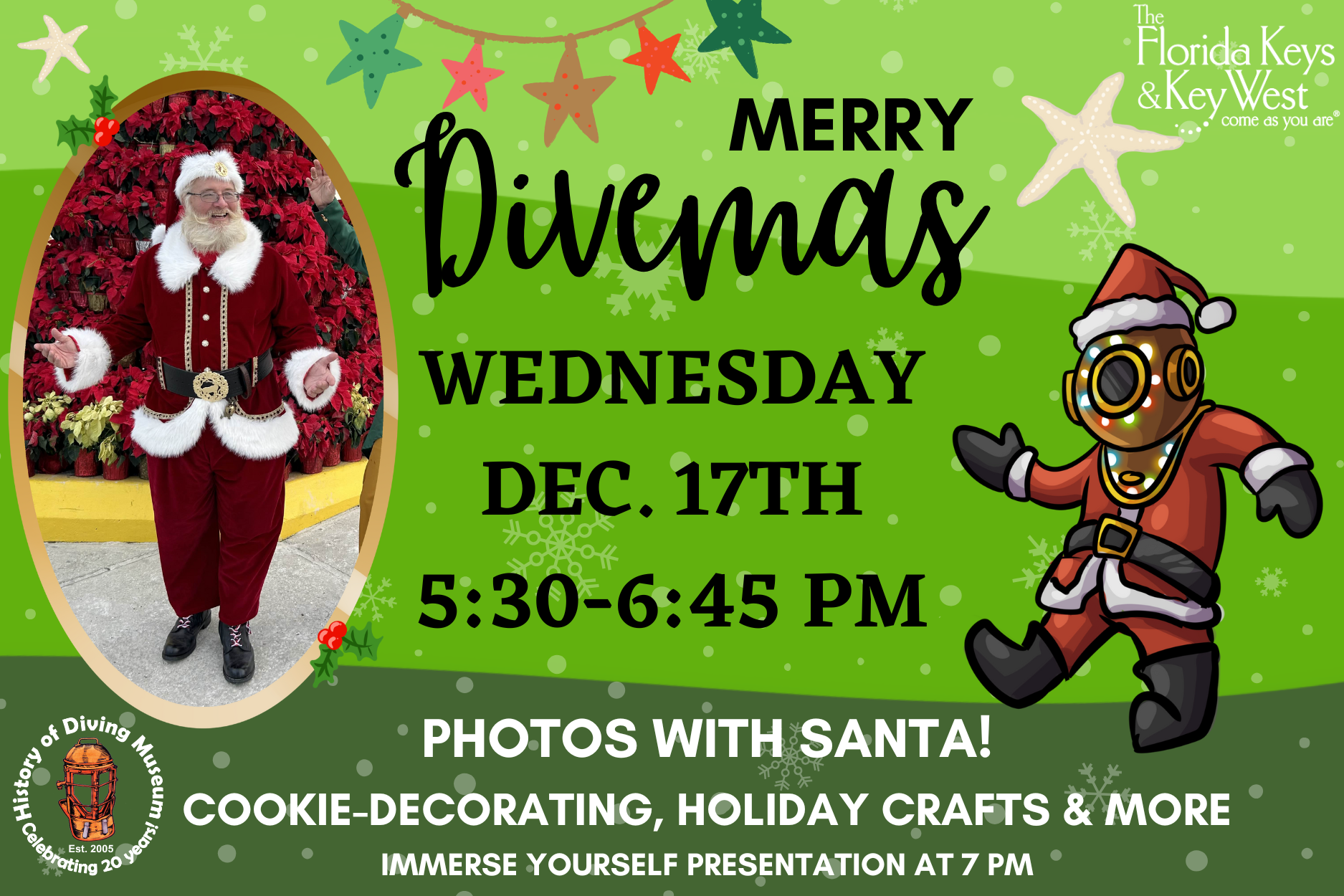 Islamorada: Join the History of Diving Museum for its annual Merry Divemas! This family-friendly event includes ornament-making, festive cookie-decorating, and meet-and-greets with Santa. Celebrate the holidays and dive into the Museum’s exhibits with a fun scavenger hunt for hidden Christmas presents. Be sure to see the Museum’s Celebrating 20 Years! Featured Exhibit before it closes December 31st. An Immerse Yourself presentation will follow Merry