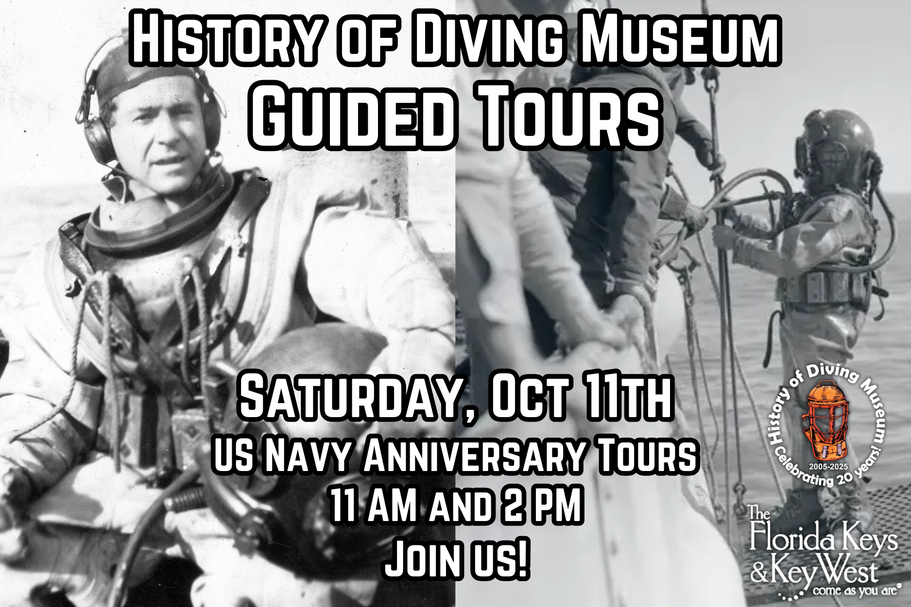 Join the History of Diving Museum at 11 AM and 2 PM for a special guided tour of the exhibits! The tour is included in your admission price. October’s tours will coincide with the 250th anniversary of the US Navy, and feature highlights of military divers and their heroic, often dangerous wor