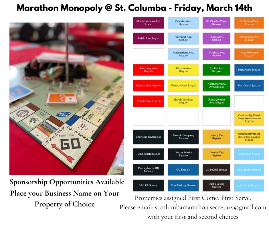 Home / This event has passed. « All Events Marathon Monopoly @ St. Columba March 14, 2025 All day Add to calendar Google Calendar iCalendar Outlook 365 Outlook Live