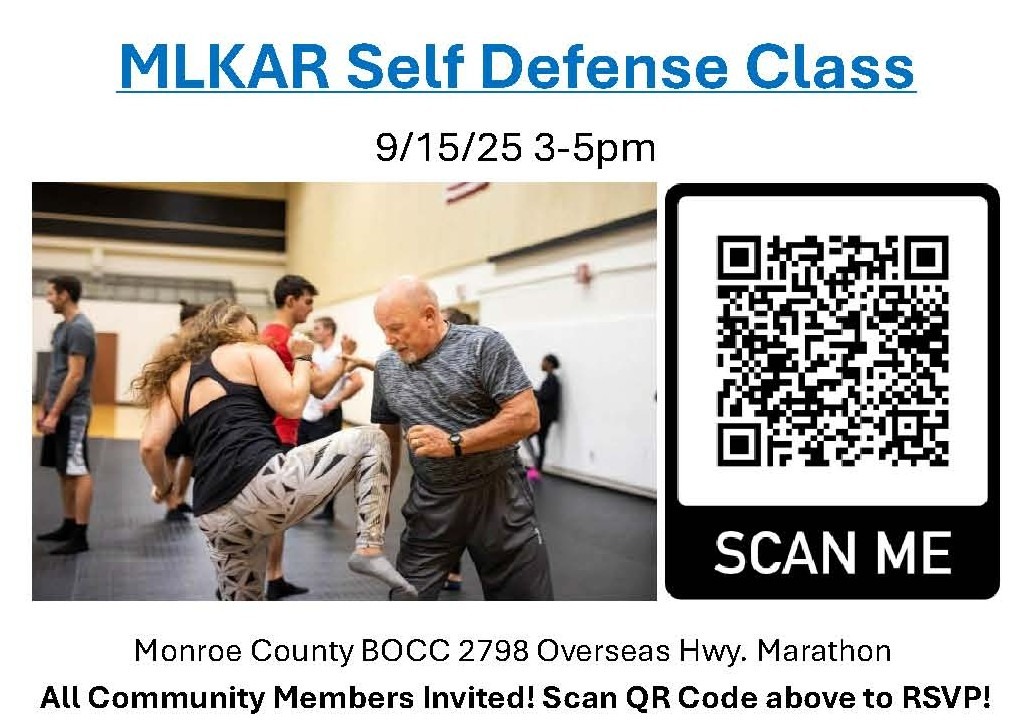Home / This event has passed. « All Events MLKAR SELF DEFENSE CLASS September 15, 2025 @ 3:00 pm – 5:00 pm Marathon & Lower Keys Association 305-743-2485 View Organizer Website ceo@mlkar.com MONROE COUNTY BOCC 2798 Overseas Hwy Marathon, Florida 33050 United States + Google Map Add to calendar Google Calendar iCalendar Outlook 365 Outlook Live