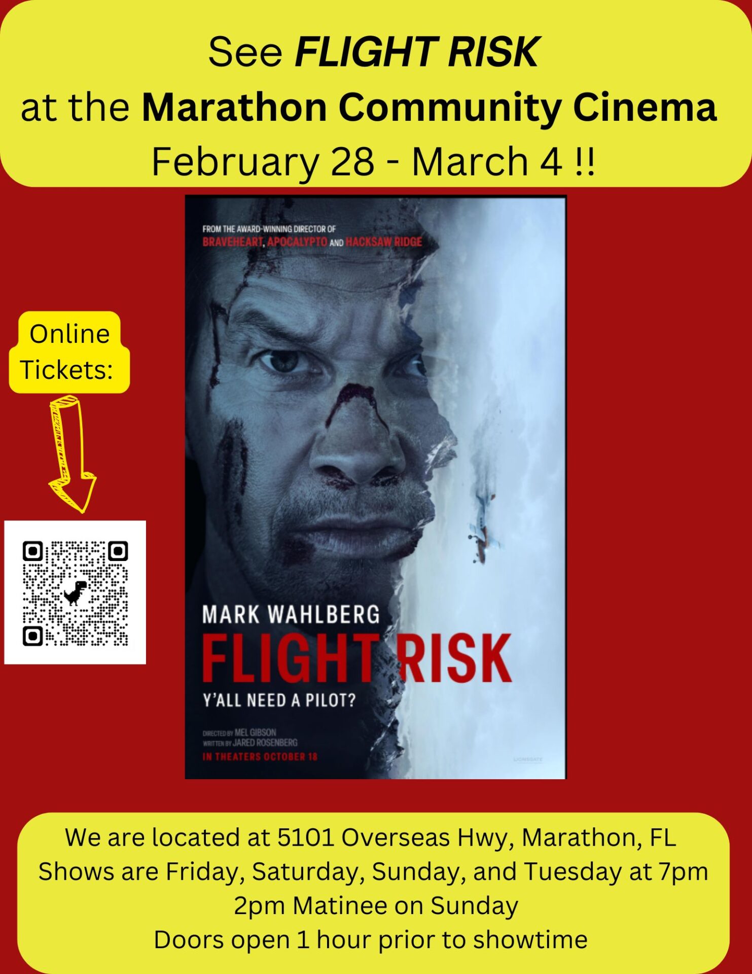 Home / This event has passed. « All Events SEE FLIGHT RISK @ THE MARATHON COMMUNITY CINEMA February 28 @ 7:00 pm – March 4 @ 7:00 pm Add to calendar Google Calendar iCalendar Outlook 365 Outlook Live