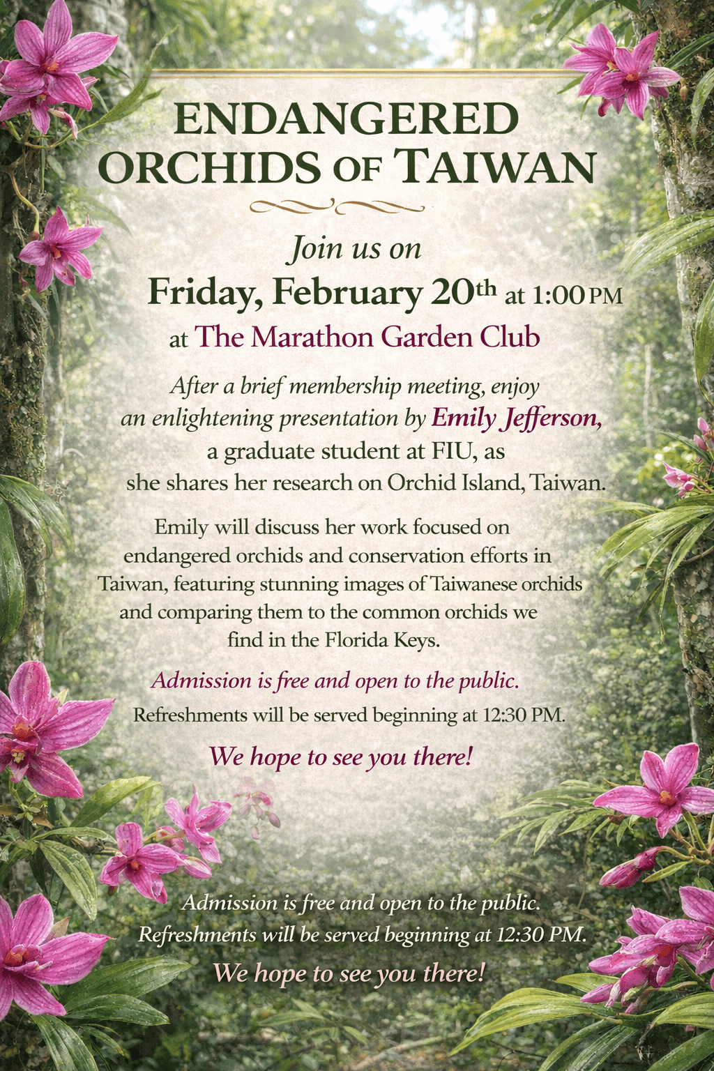 THE MARATHON GARDEN CLUB PRESENTS ENDANGERED ORCHIDS OF TAIWAN