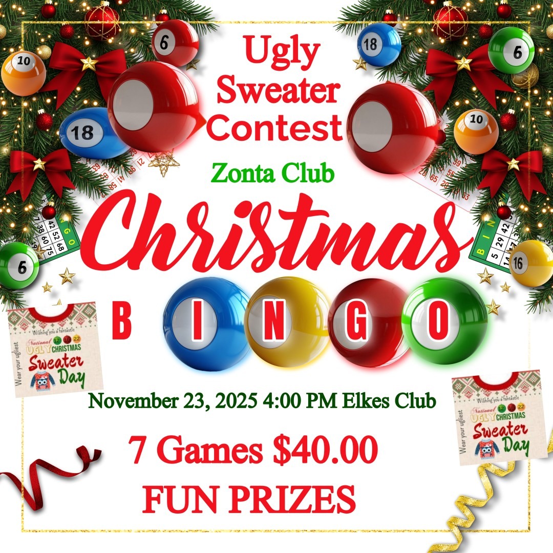 Home / « All Events ZONTA CLUB-UGLY SWEATER CONTEST-CHRISTMAS BINGO November 23 @ 4:00 pm – 8:00 pm Marathon Elks Lodge 2139 8239 Overseas Hwy Marathon, FL 33050 United States + Google Map 305-743-2652 View Venue Website Add to calendar Google Calendar iCalendar Outlook 365 Outlook Live