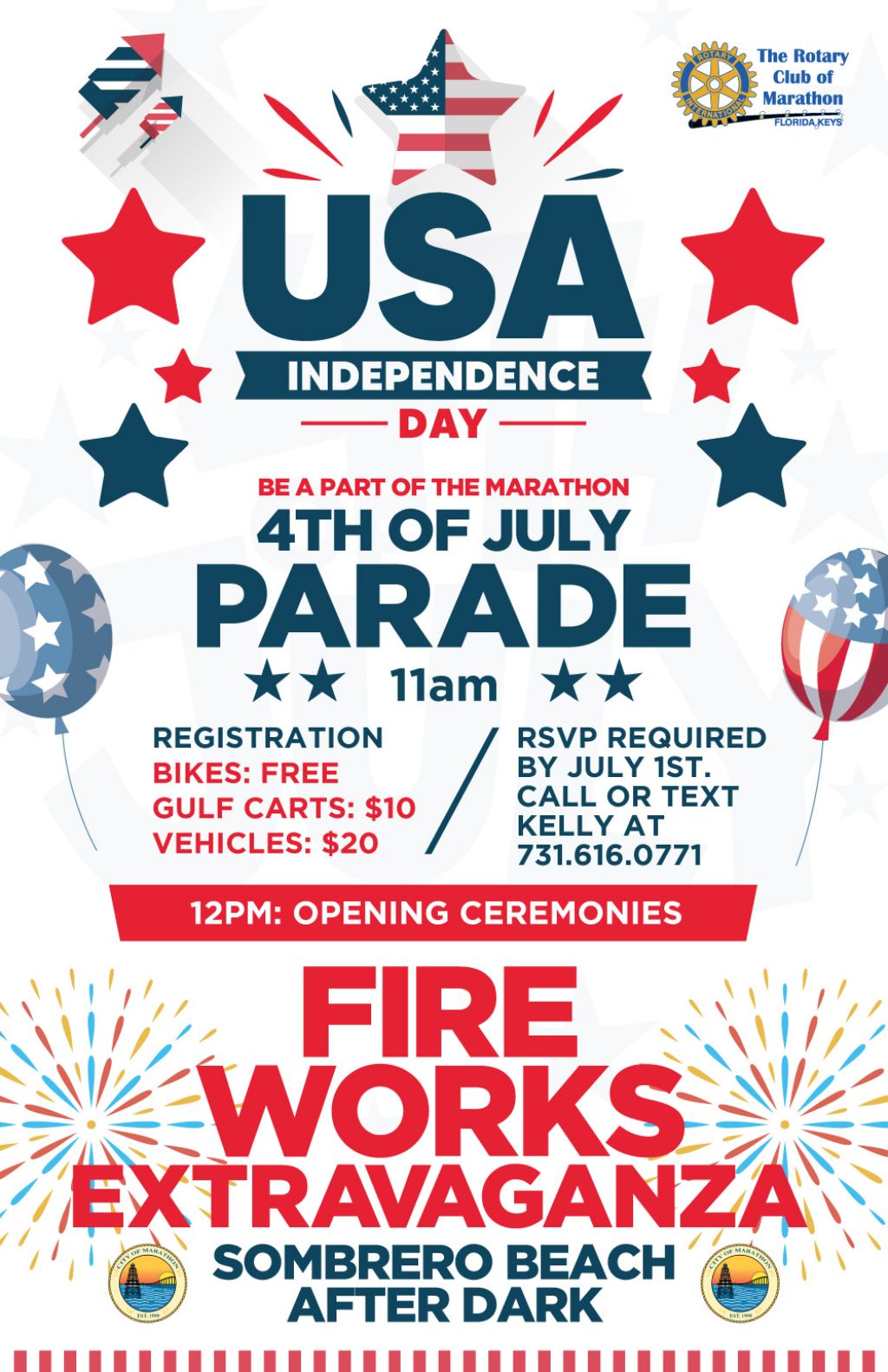 Sombrero Beach Marathon, FL, United StatesMarathonA full day of beachside activities begins with a patriotic parade starting at 11 a.m., July 4, from Marathon High School to Sombrero Beach and fireworks starting at approximately 9...